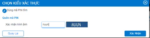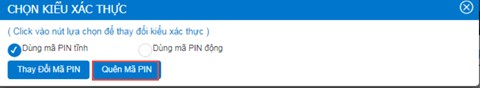 Khách hàng có thể thay đổi kiểu xác thực sang Dùng PIN động.