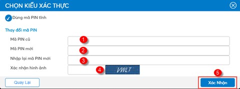Bước 2: Điền thông tin mã PIN cũ (2) , PIN mới (3), Nhập lại PIN (4) → Bấm “Đồng ý” (5)