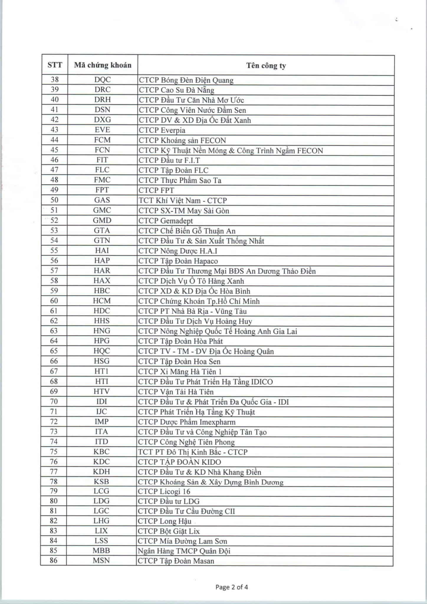 Báo cáo Danh mục chứng khoán thực hiện ký quỹ quý II/2018 (HOSE)