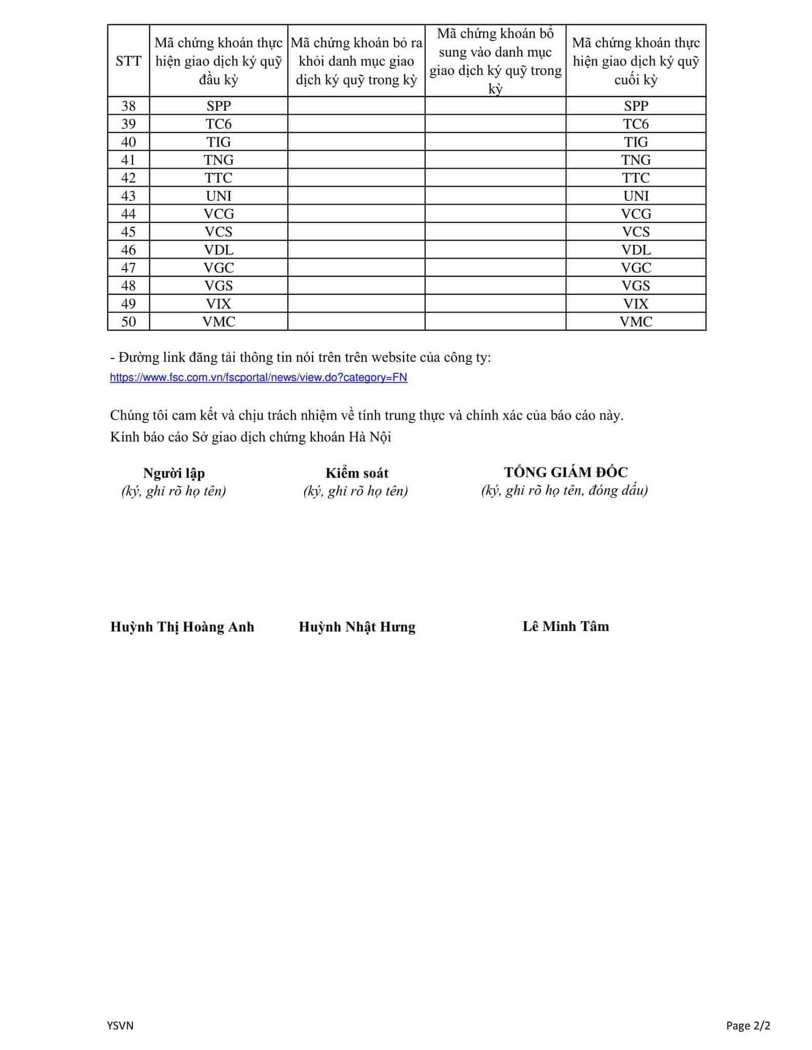 Báo cáo danh mục chứng khoán thực hiện giao dịch ký quỹ sàn HNX Quý II/2018