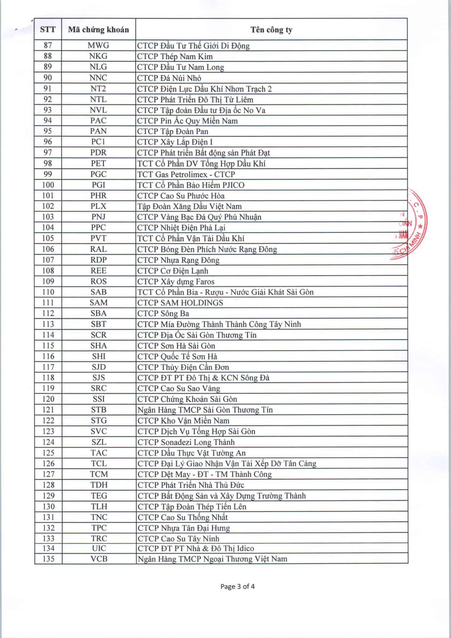 Báo cáo danh mục chứng khoán thực hiện giao dịch ký quỹ sàn HOSE (03/2018)