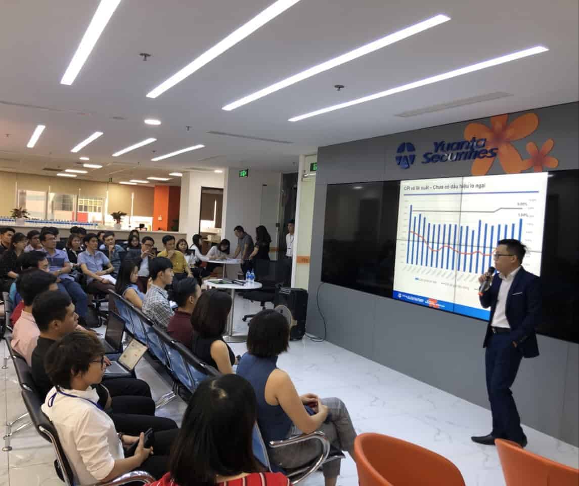 Các nhà đầu tư đang lắng nghe chia sẻ từ Ông Nguyễn Thế Minh – Giám đốc phân tích Chứng khoán Yuanta