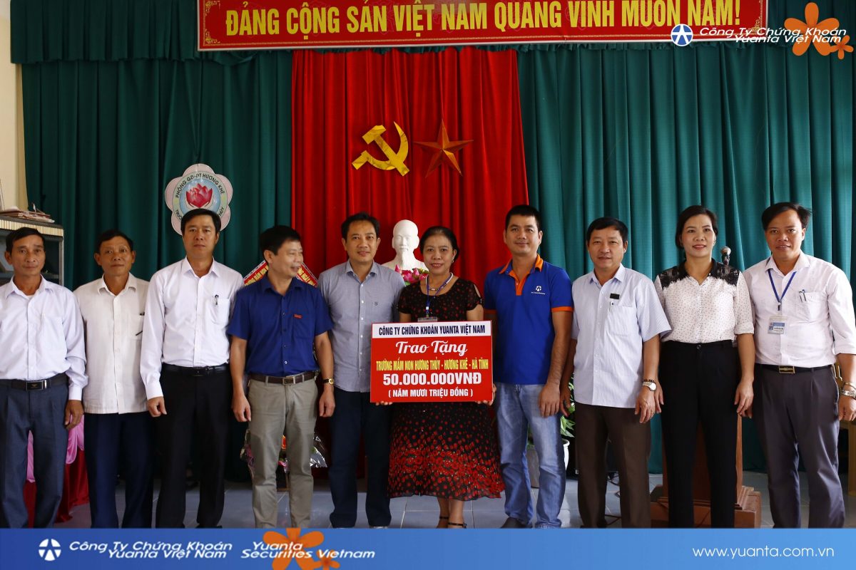 Công ty Chứng Khoán Yuanta Việt Nam đã trích từ lợi nhuận của mình 200,000,000 VNĐ (hai trăm triệu đồng) để cứu trợ cho đồng bào ở các xã Gia Phố, Hương Thuỷ… huyện Hương Khê, Hà Tĩnh