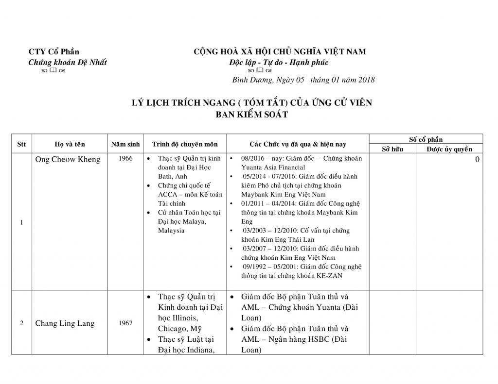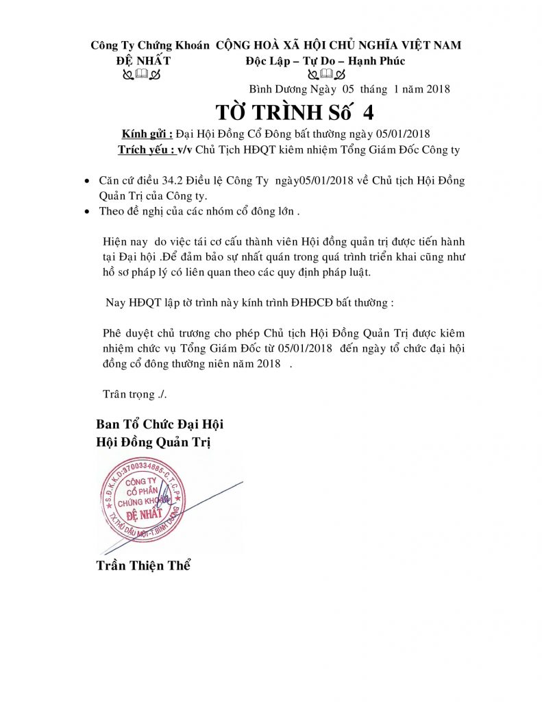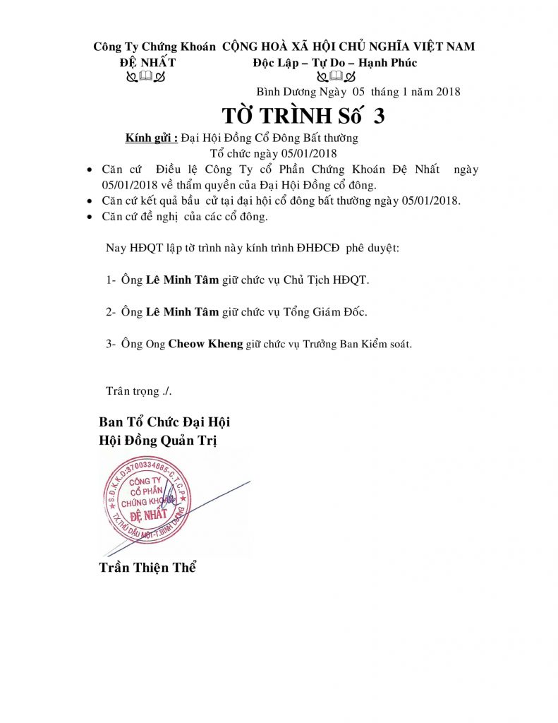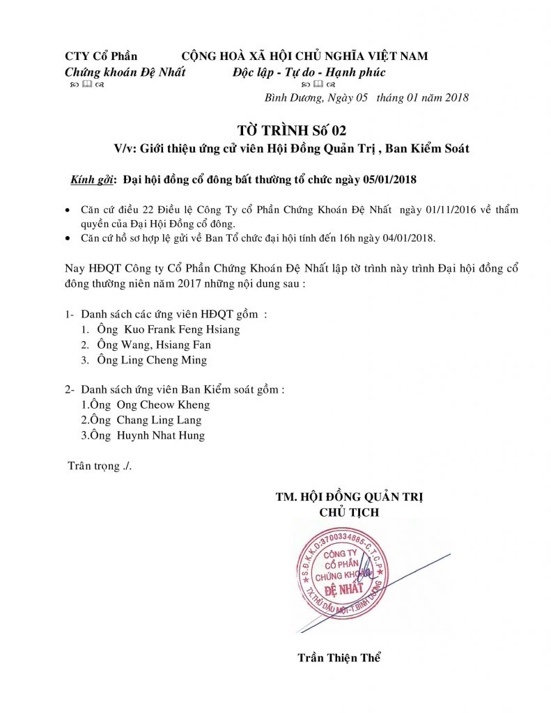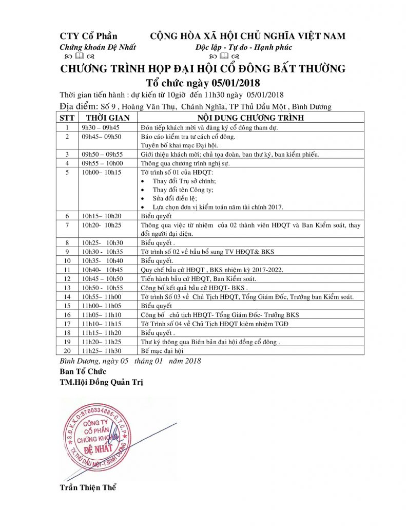 Chương trình ĐHCĐ bất thường ngày 05 tháng 01 năm 2018
