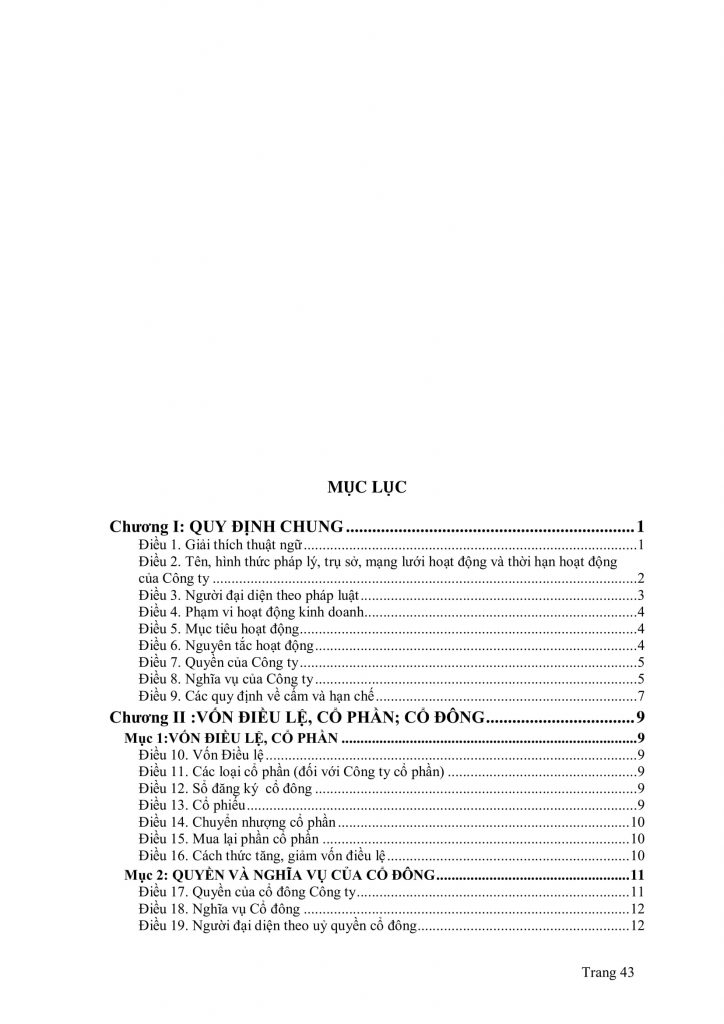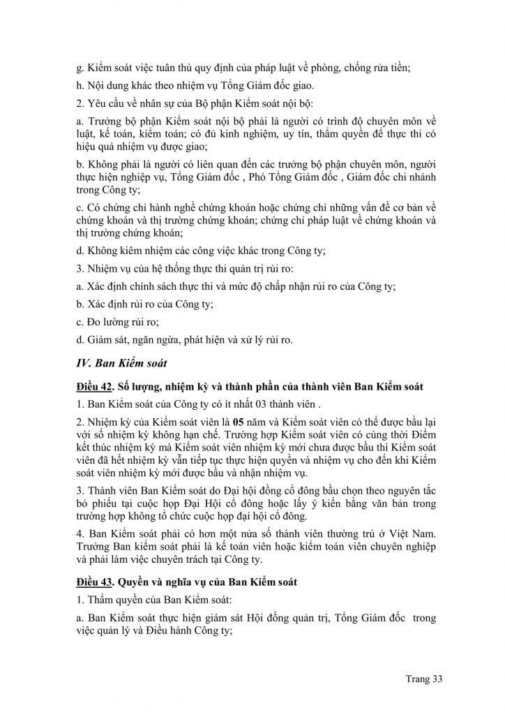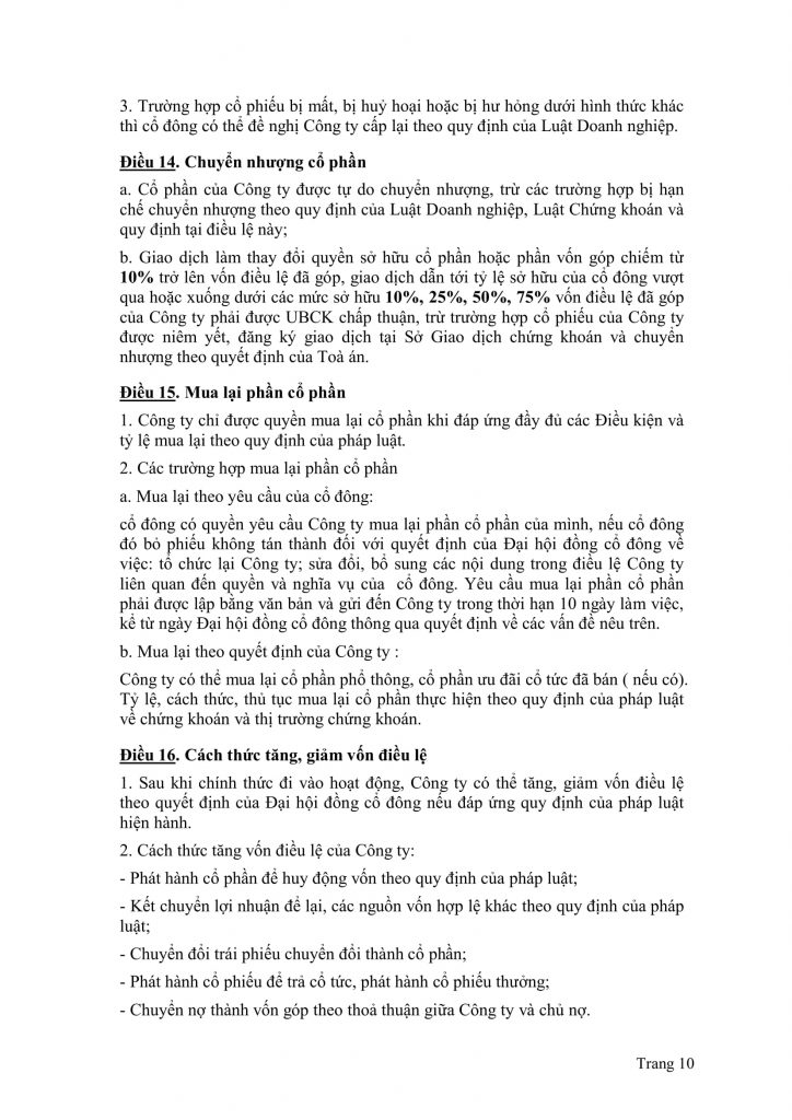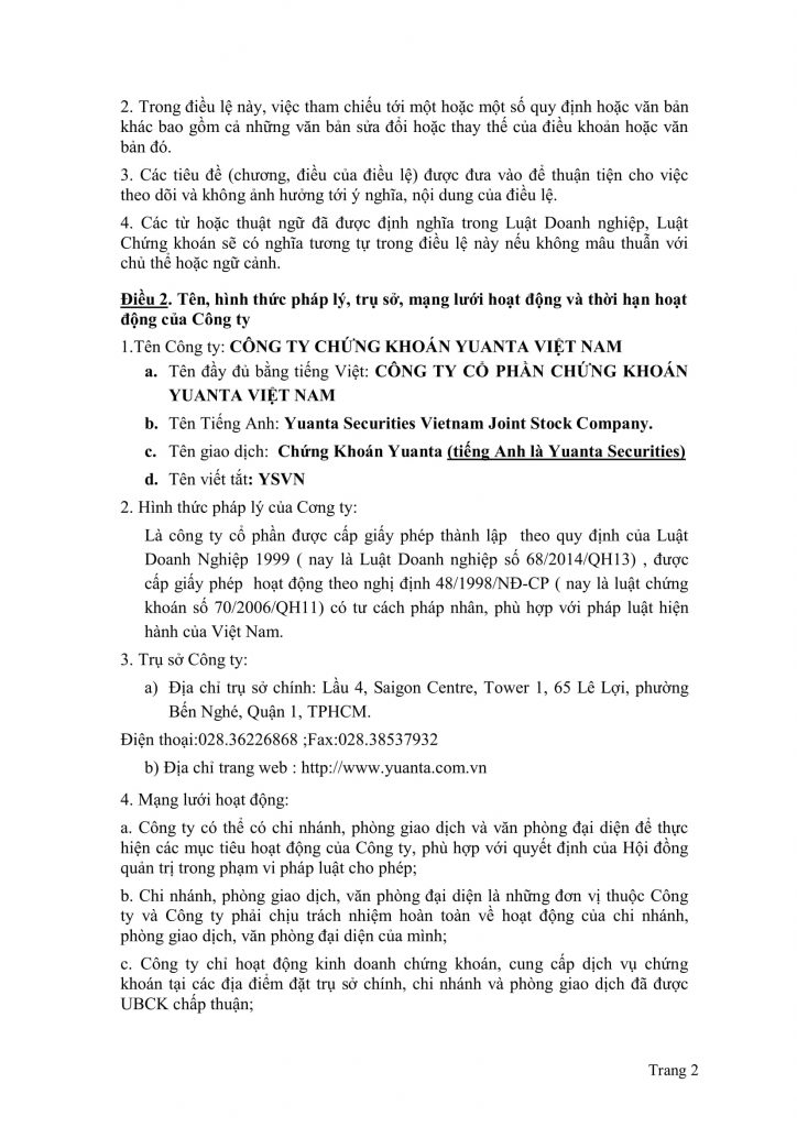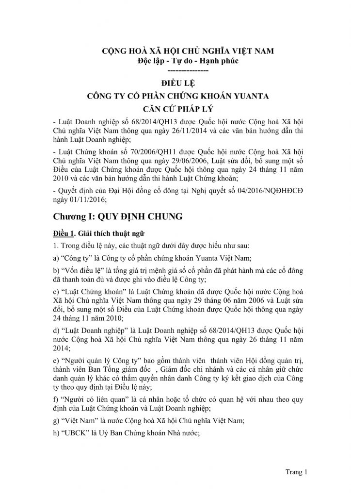 Dự thảo Điều lệ Công ty Cổ phần Chứng khoán Yuanta Vietnam