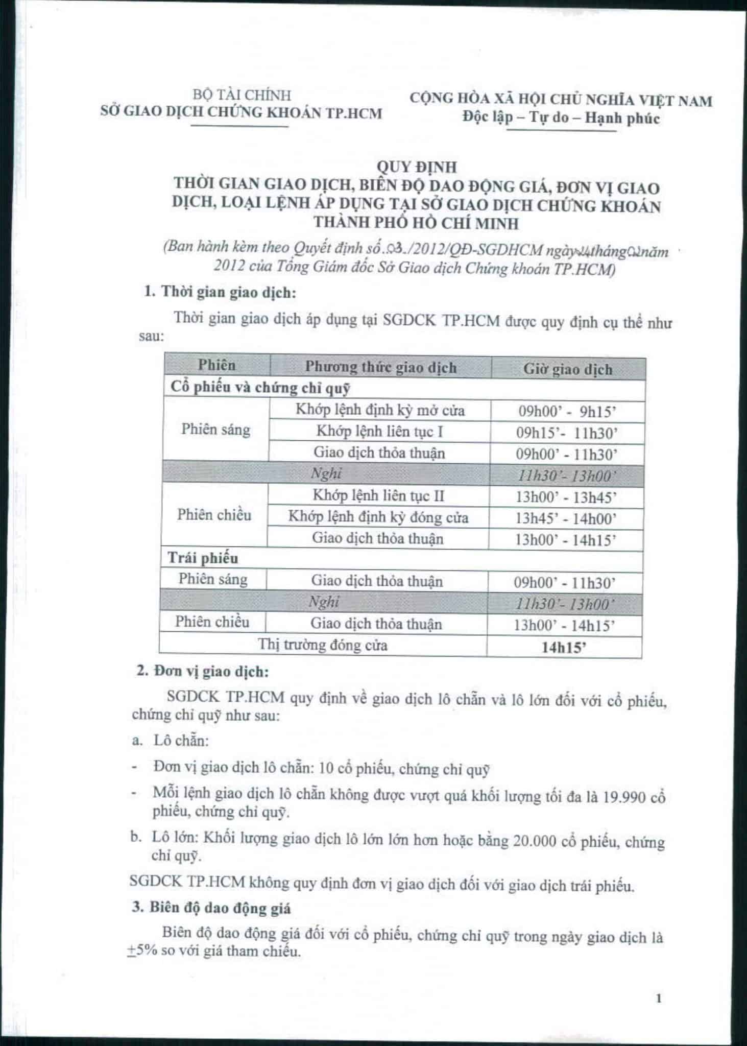 HOSE: Thông báo nghỉ lễ nhân Ngày giải phóng Miền Nam 30-4 và Quốc tế lao động 1-5 năm 2012