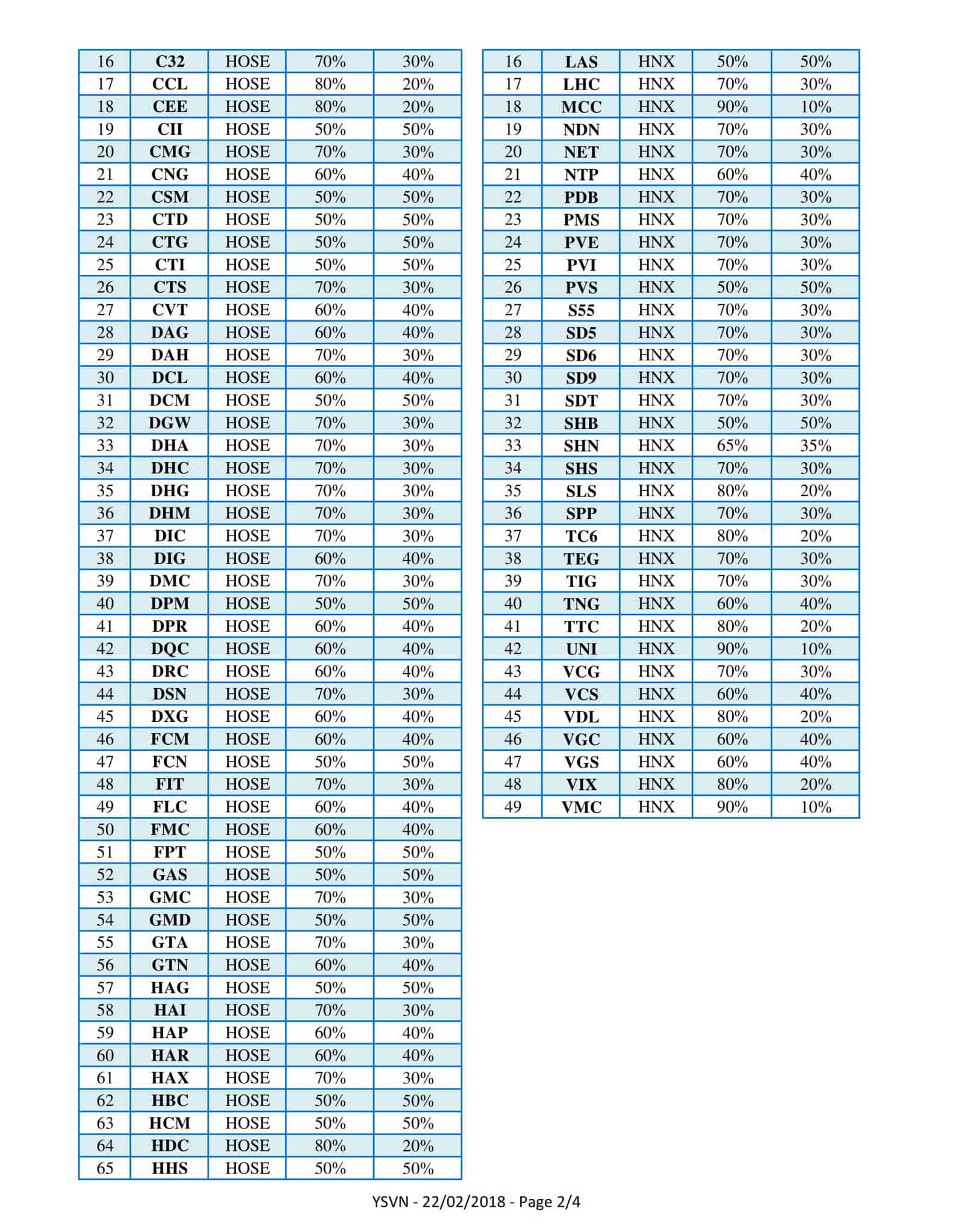 Thông báo Danh mục Chứng khoán giao dịch ký quỹ ngày 28/02/2018
