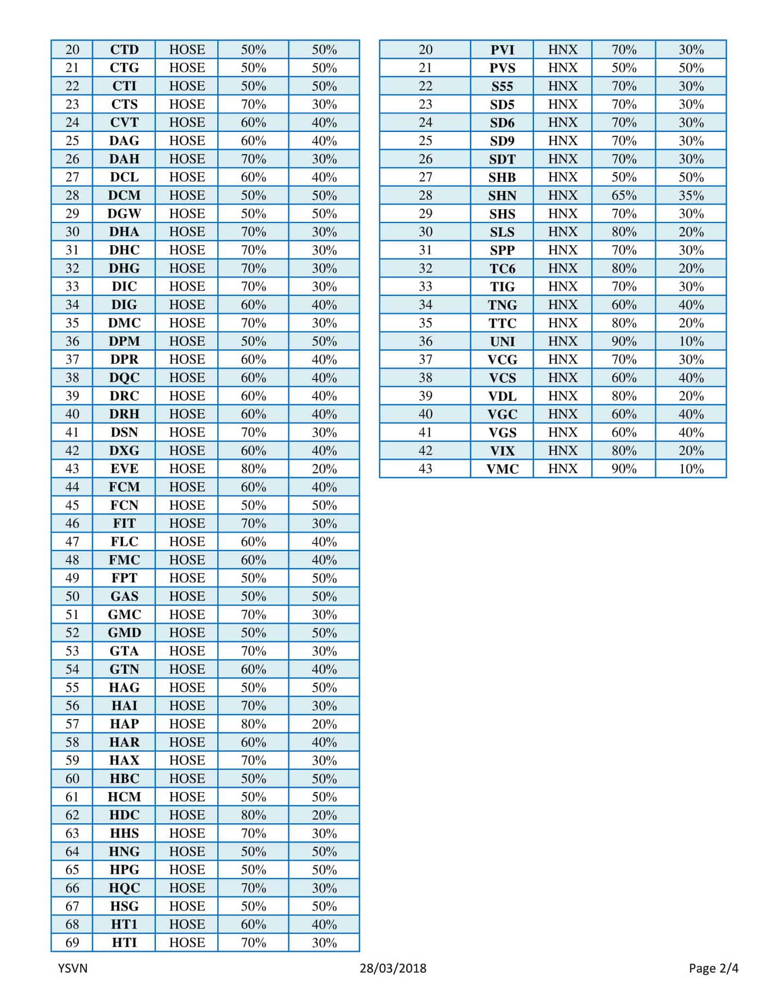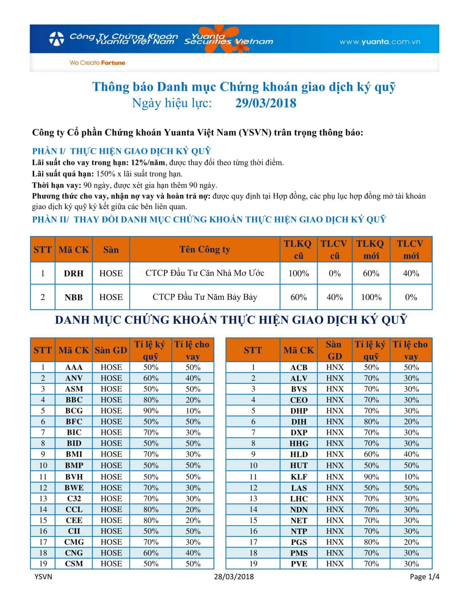 Thông báo Danh mục Chứng khoán giao dịch ký quỹ ngày 29/03/2018