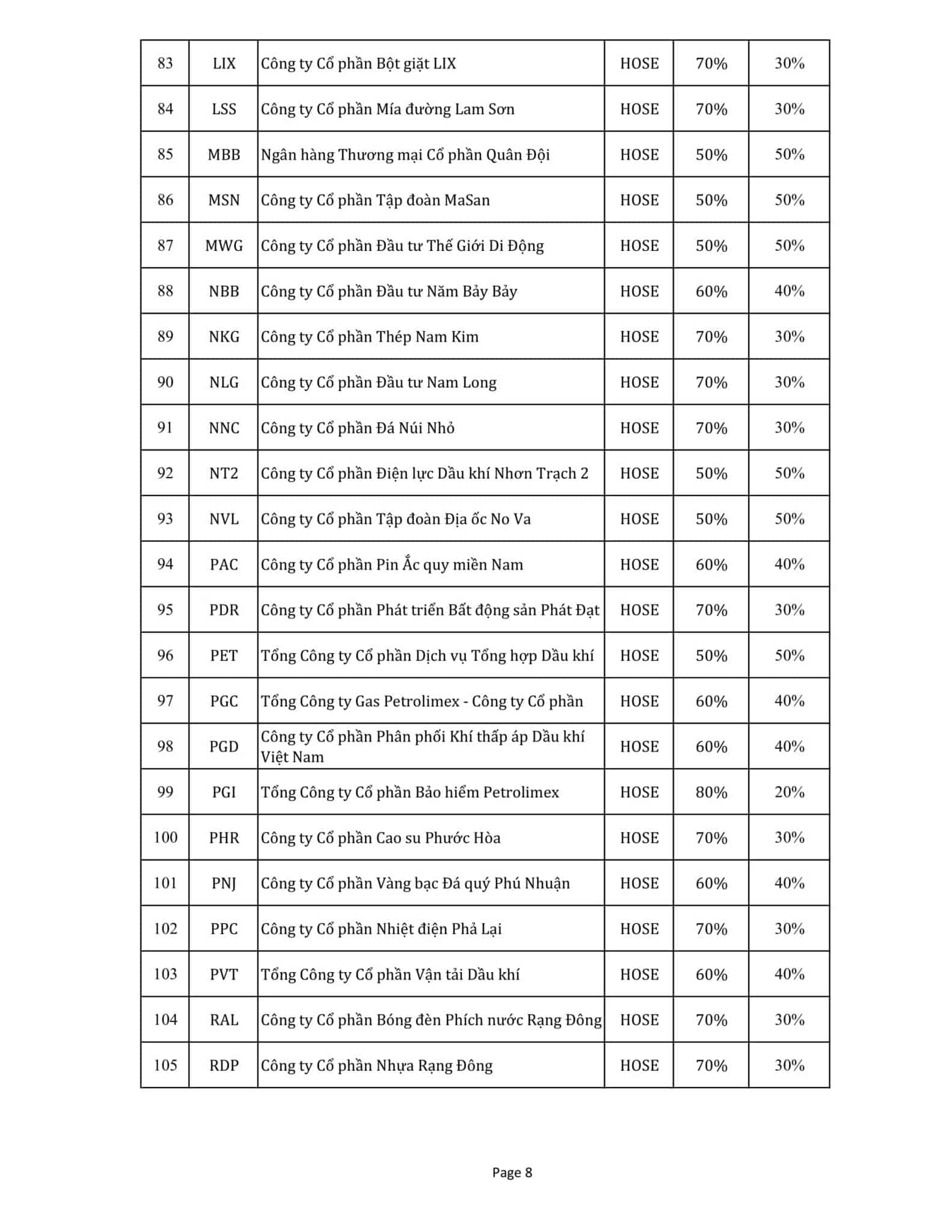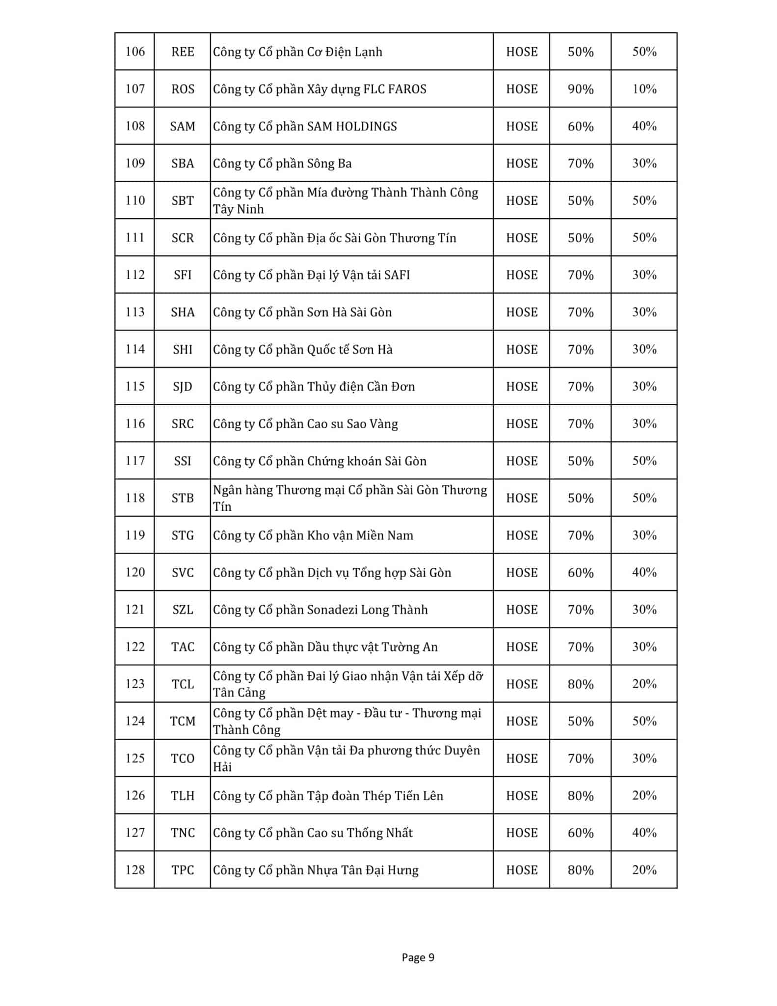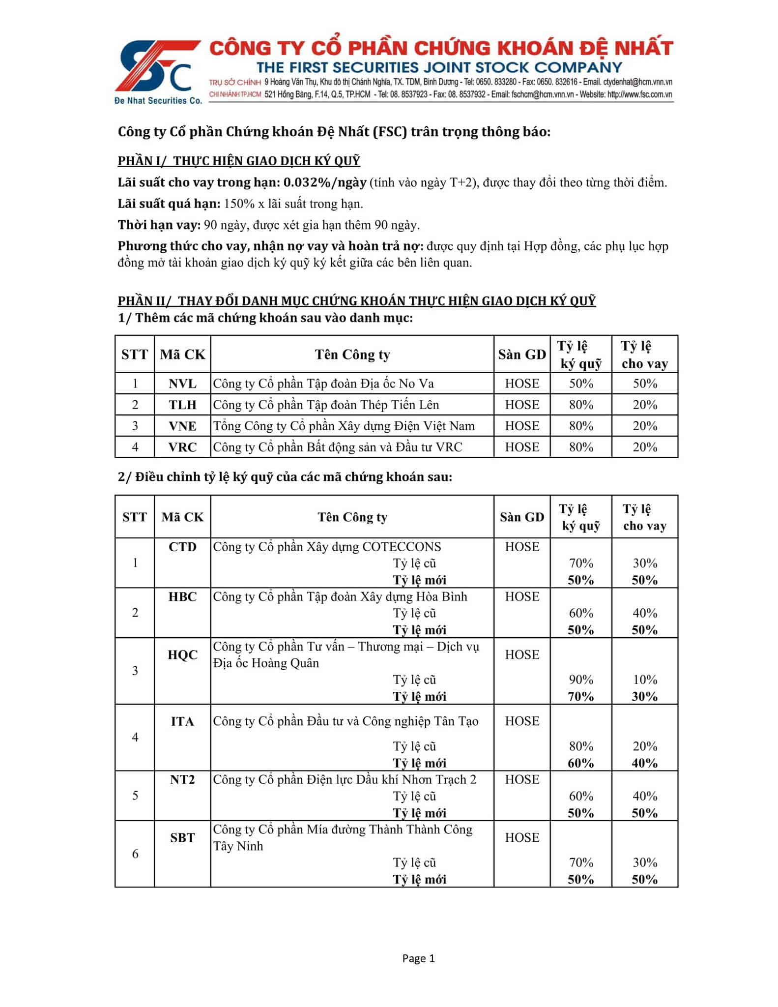 Thông báo danh mục ký quỹ tại FSC ngày 30/11/2017