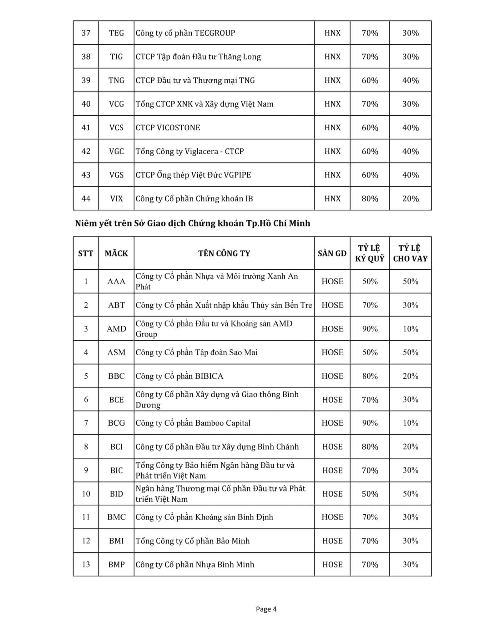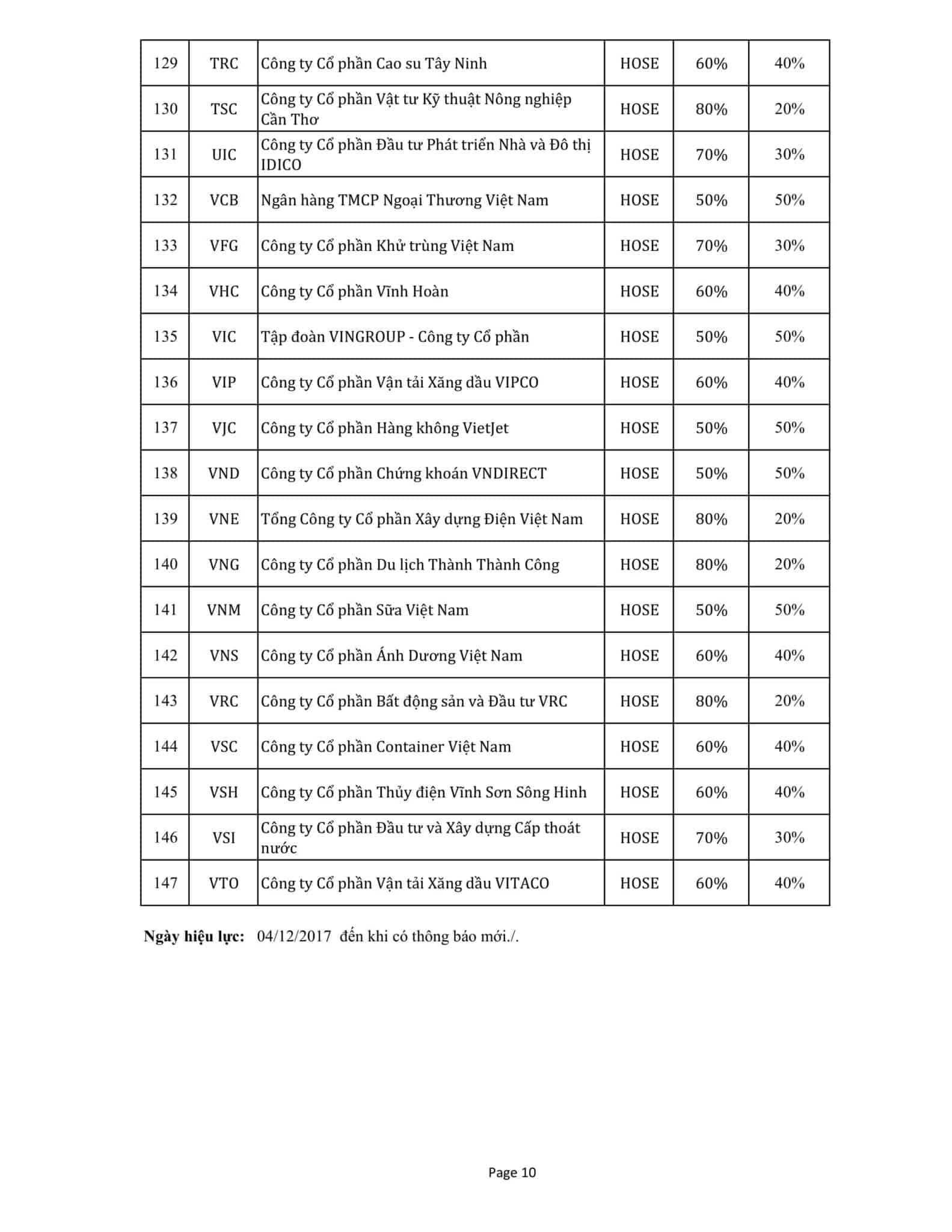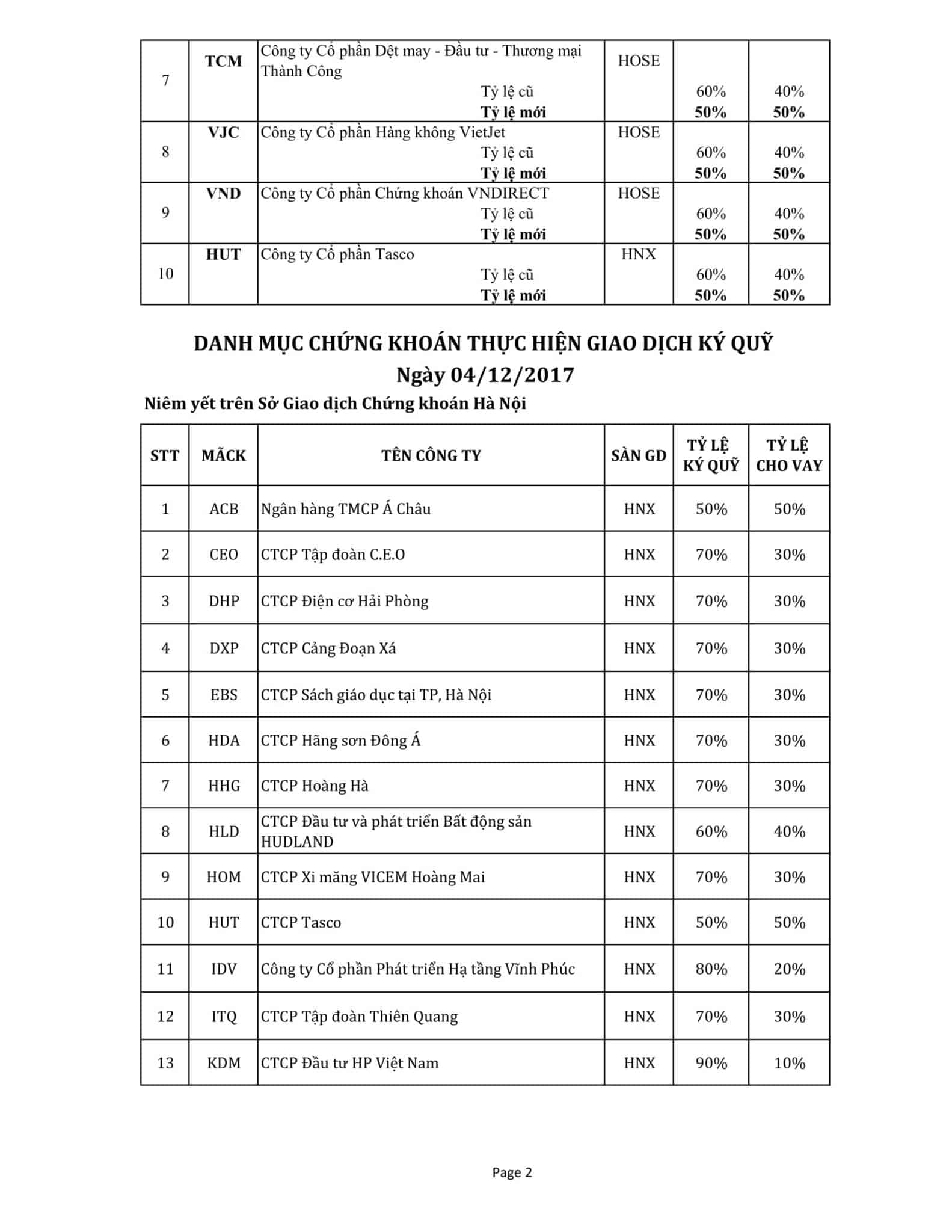Thông báo danh mục ký quỹ tại FSC ngày 04-12-2017