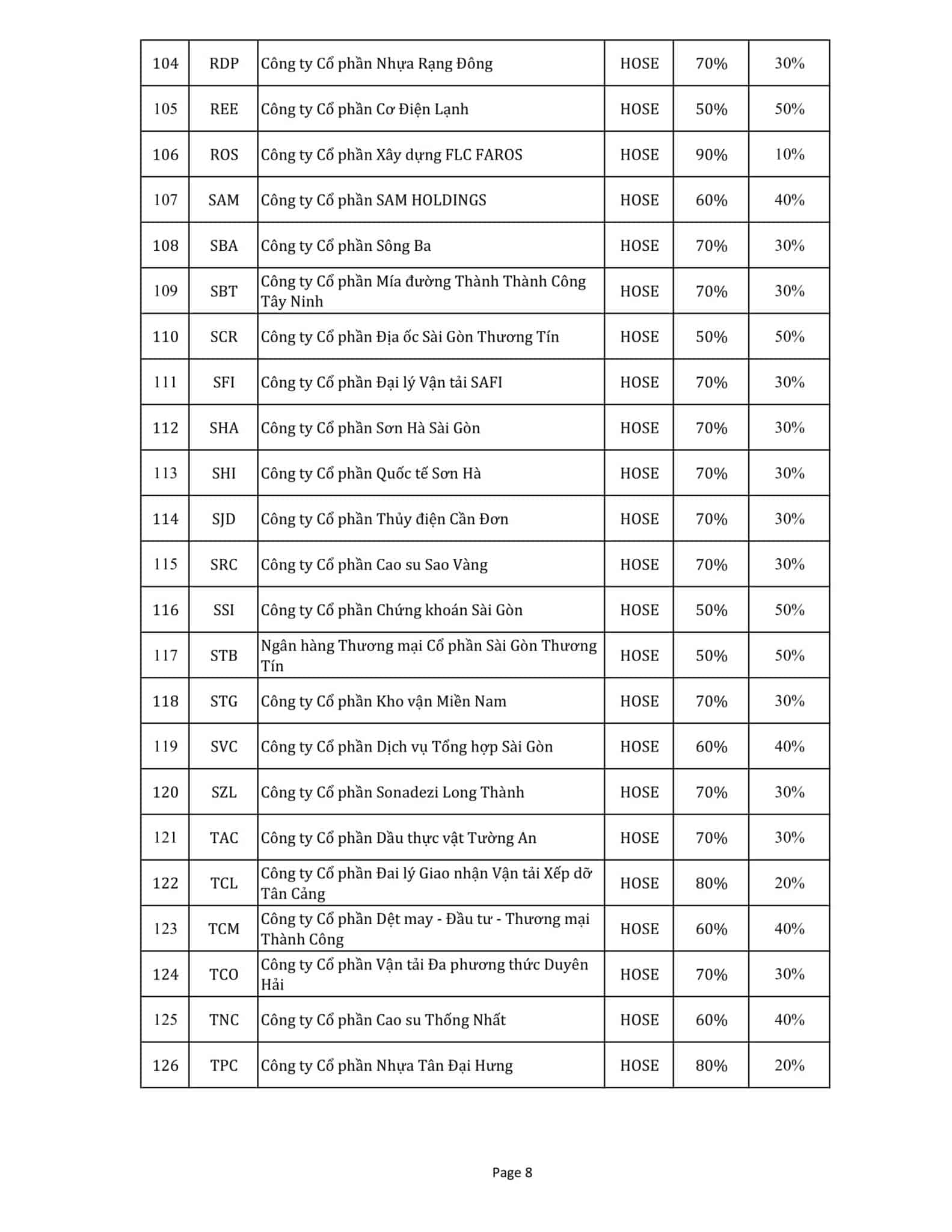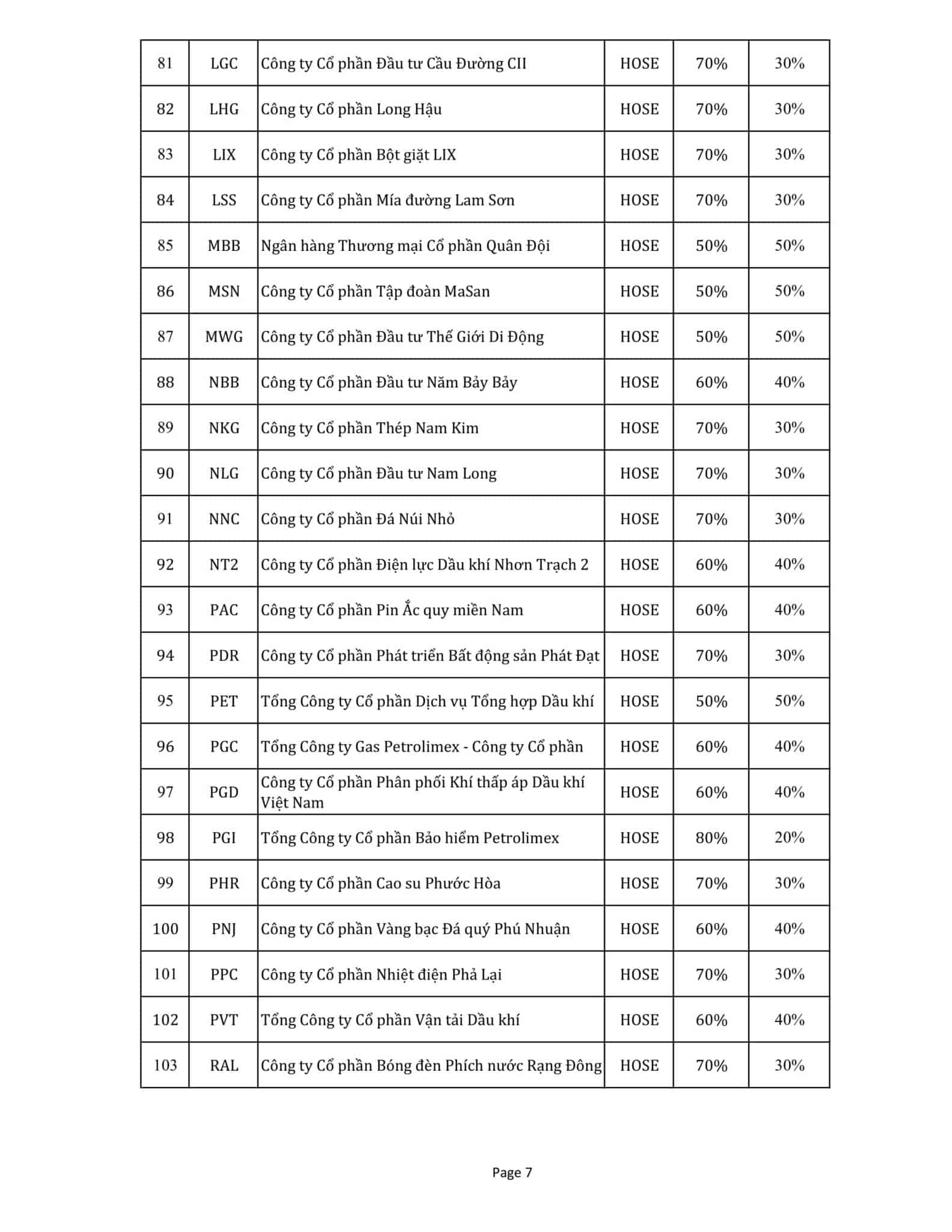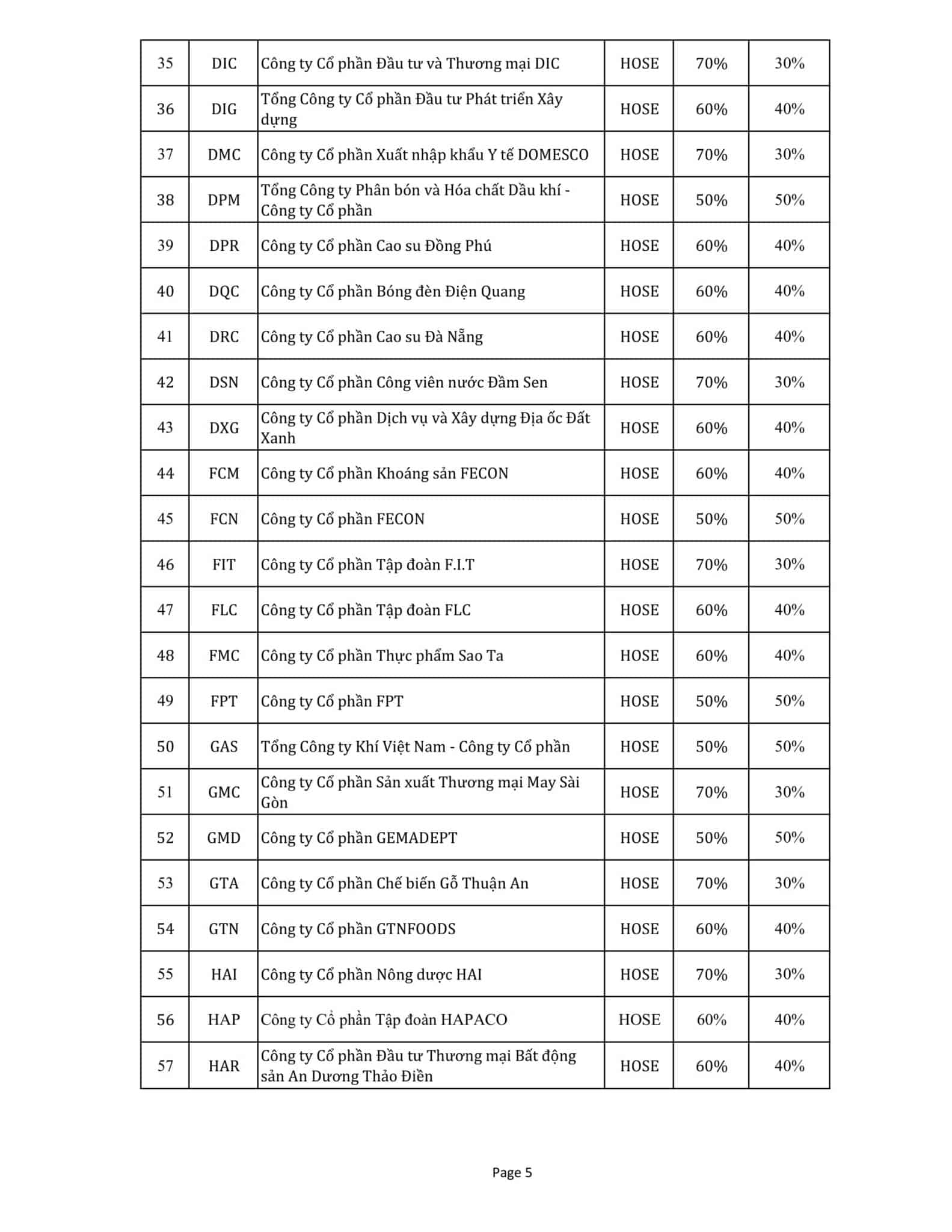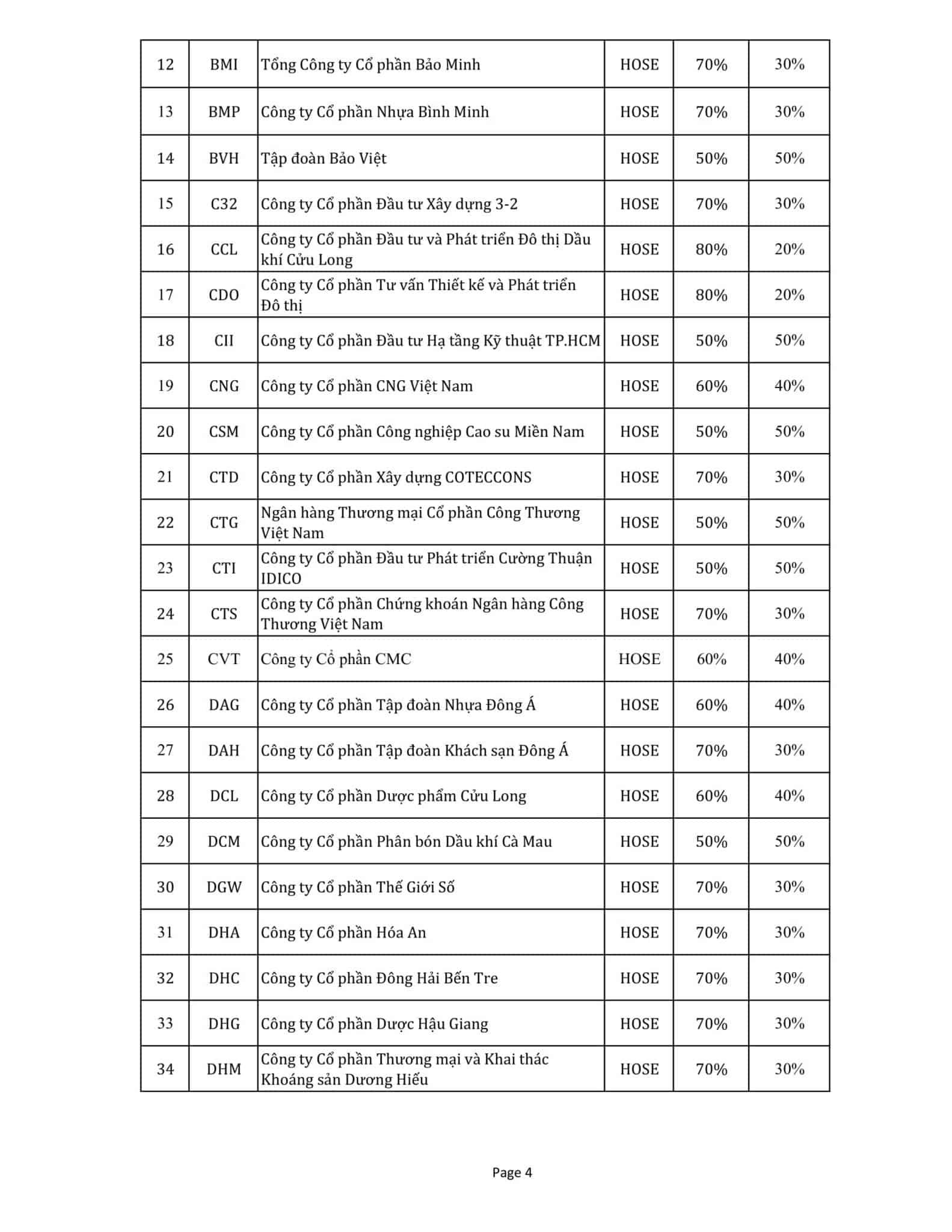 Thông báo thay đổi Danh mục Chứng khoán thực hiện giao dịch ký quỹ tại FSC ngày 30/11/2017