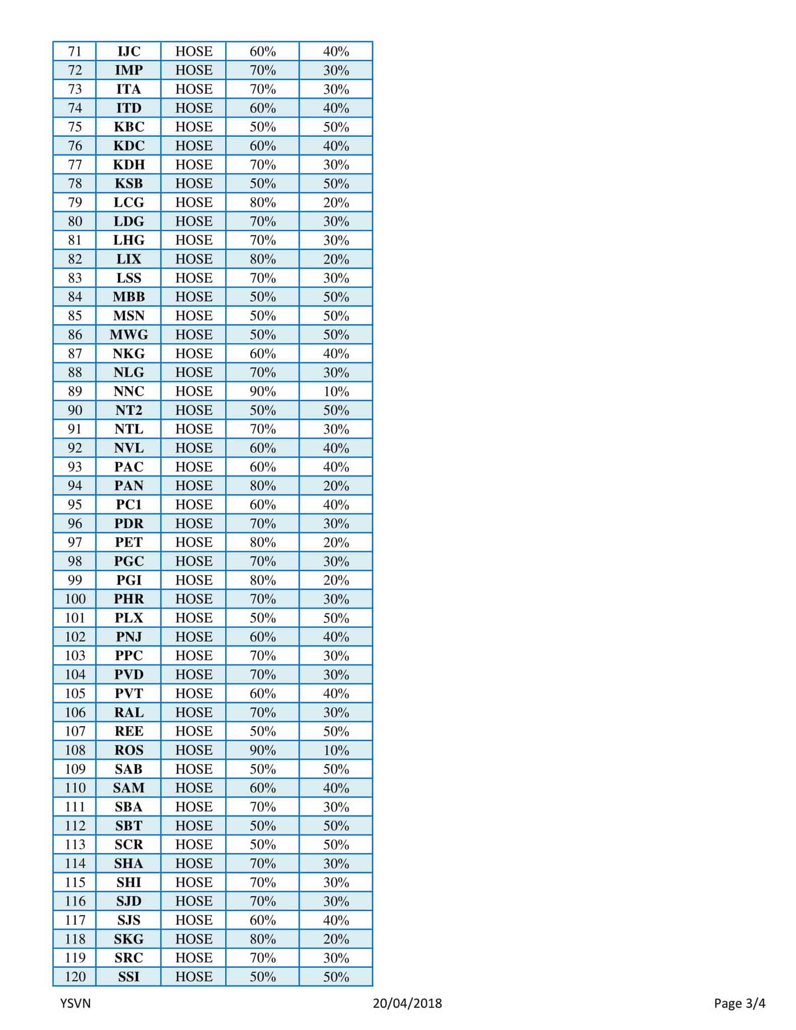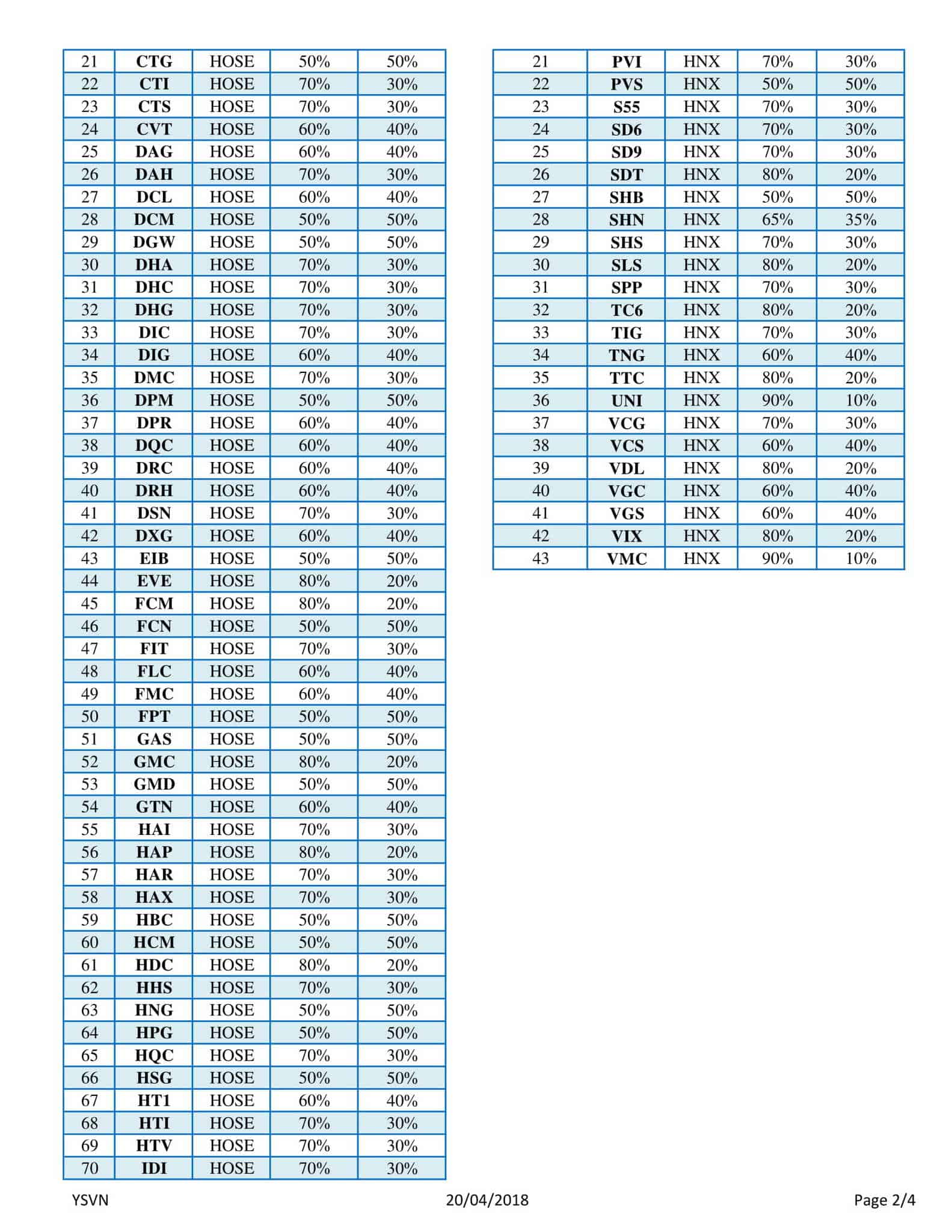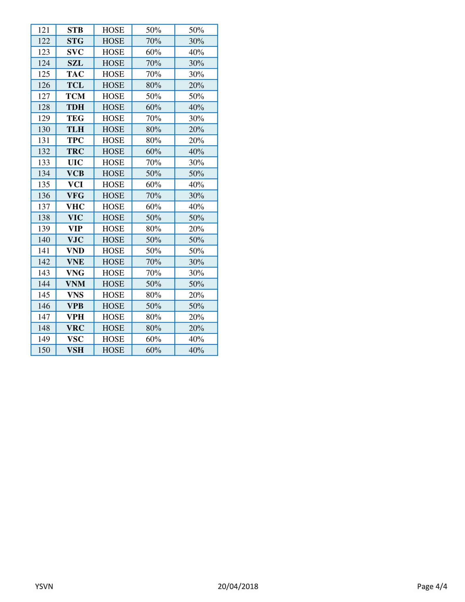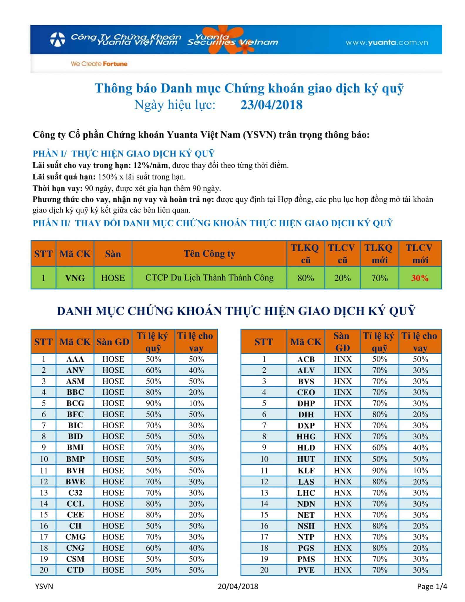 Thông báo danh mục ký quỹ tại YSVN ngày 23-04-2018