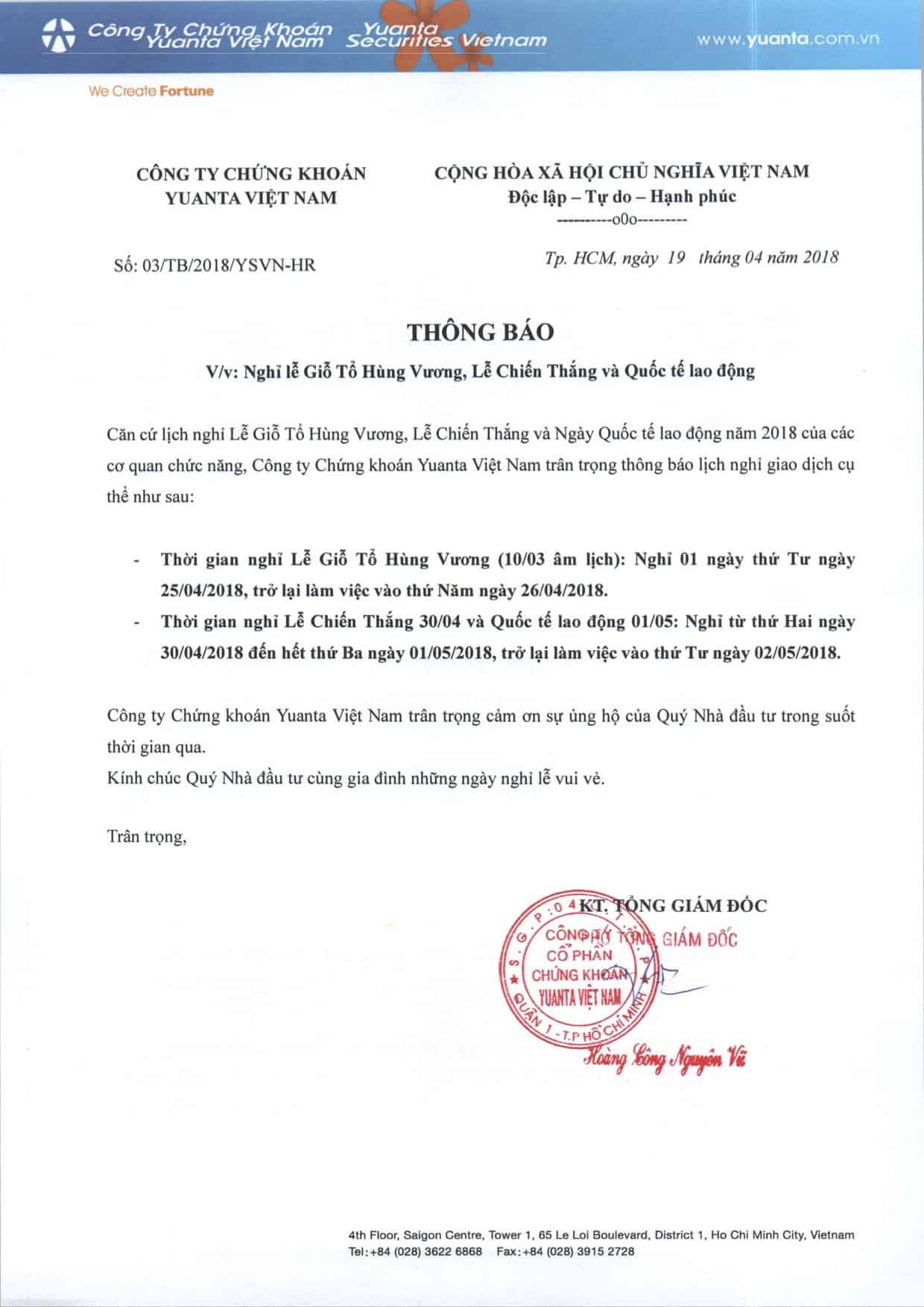 Thông báo nghỉ lễ Giỗ Tổ Hùng Vương, Lễ Chiến Thắng và Quốc tế lao động