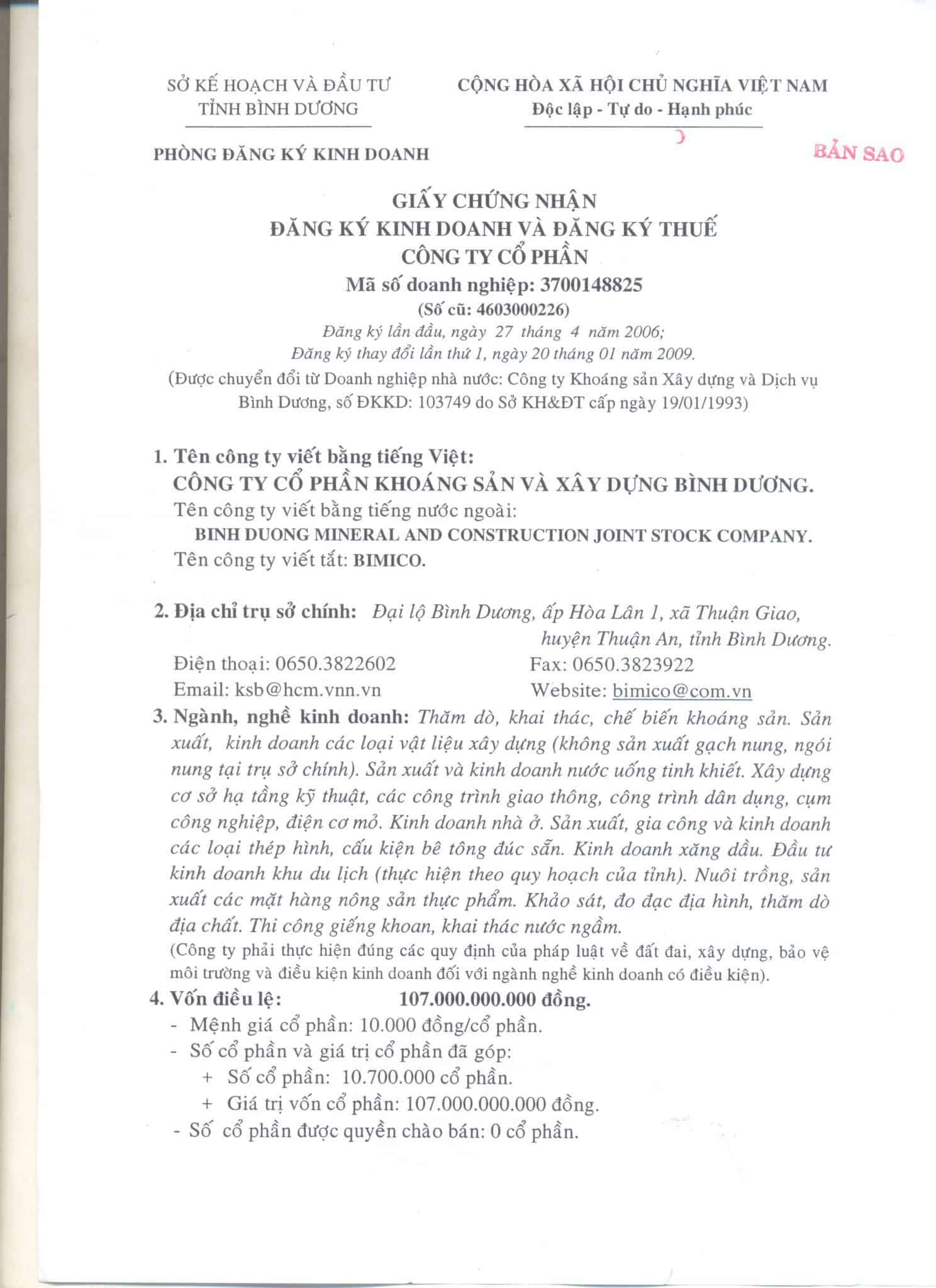 Thông tin về Bản Cáo bạch và Báo cáo Tài chính của Công ty Cổ phần Khoáng sản và Xây dựng Bình Dương