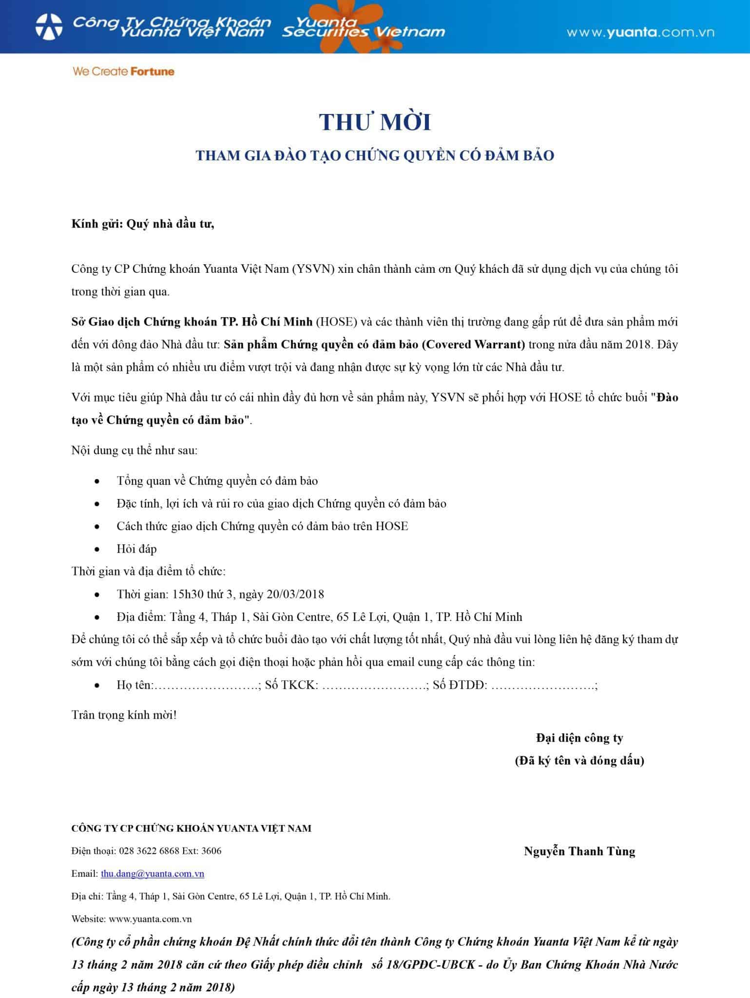 Thư mời tham gia hội thảo chứng quyền có đảm bảo