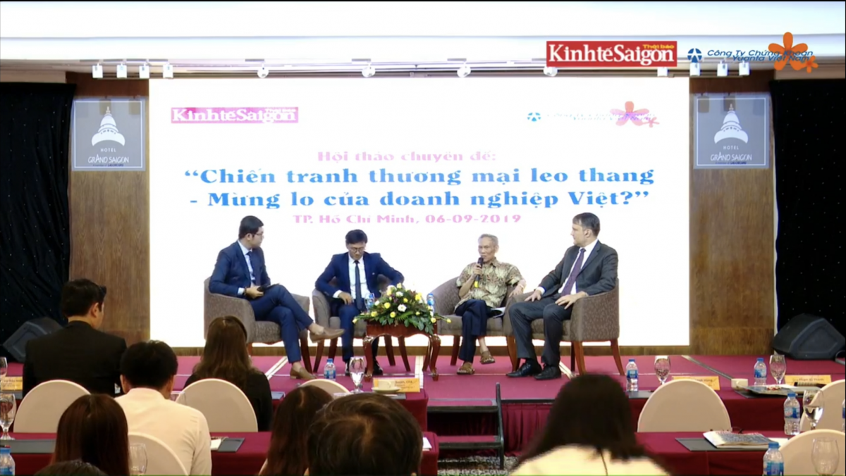 Hội thảo thu hút gần 300 doanh nghiệp tại TPHCM tham dự và trao đổi. Có mặt tại hội thảo chuyên gia kinh tế Trương Đình Tuyển, Nguyên Bộ trưởng Bộ Thương Mại Việt Nam cho rằng trong tương lai gần nếu trường hợp chiến tranh thương mại leo thang, phạm vi thuế quan mở rộng ra toàn bộ kim ngạch song phương giữa Trung Quốc và Hoa Kỳ thì tác động tới kinh tế Việt Nam trở nên khá lớn, nhưng theo hướng có lợi cho Việt Nam bởi nước ta  có thể thay thế một phần đáng kể lưu lượng thương mại giữa Trung Quốc và Hoa Kỳ. Ngoài ra, các dòng vốn đầu tư rút khỏi Trung Quốc sẽ tìm đến Việt Nam như một điểm đến tiềm năng, nếu chúng ta đẩy mạnh cải thiện môi trường đầu tư kinh doanh.