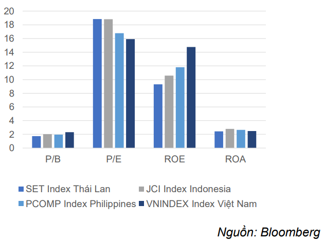Mức định giá của thị trường chứng khoán Việt Nam và các nước trong khu vực.
