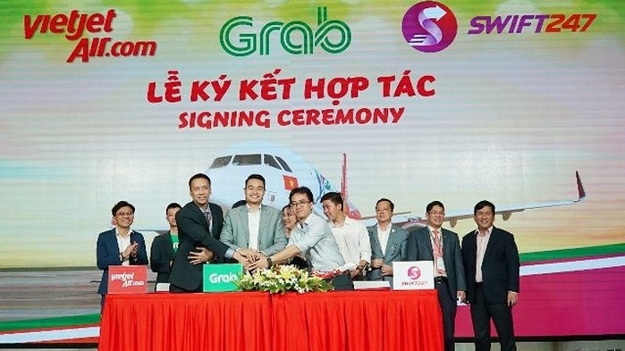 越捷、Swift247航空超快遞服務公司和Grab有限公司合作協議簽署儀式。